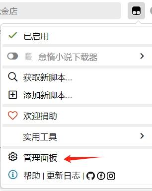 2、以篡改猴为例,左键点击篡改猴图标,在弹出的面板里再点击管理面板选项